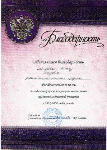 За подготовку победителя муниц. этапа предм. олимп. уч-ся |