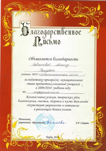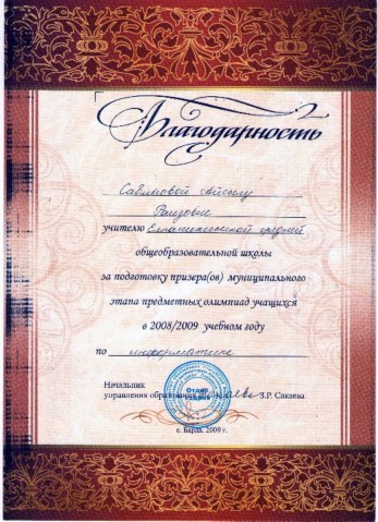 За подготовку призера муниц. этапа предм. олимп. уч-ся |