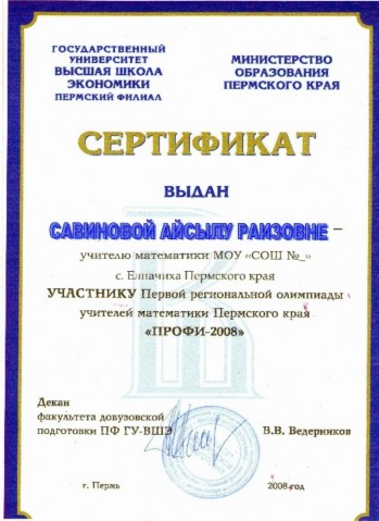 Региональная дистанционная олимпиада учителей математики «Профи-2008» |
