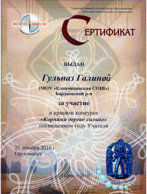 Моя ученица Галина Гульназ (11 класс) участвовала в краевом конкурсе "Корнями дерево сильно"