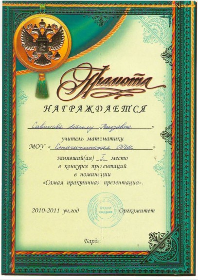 Заняла 1 место в муниципальном конкурсе презентаций в номинации "Самая практичная презентация"